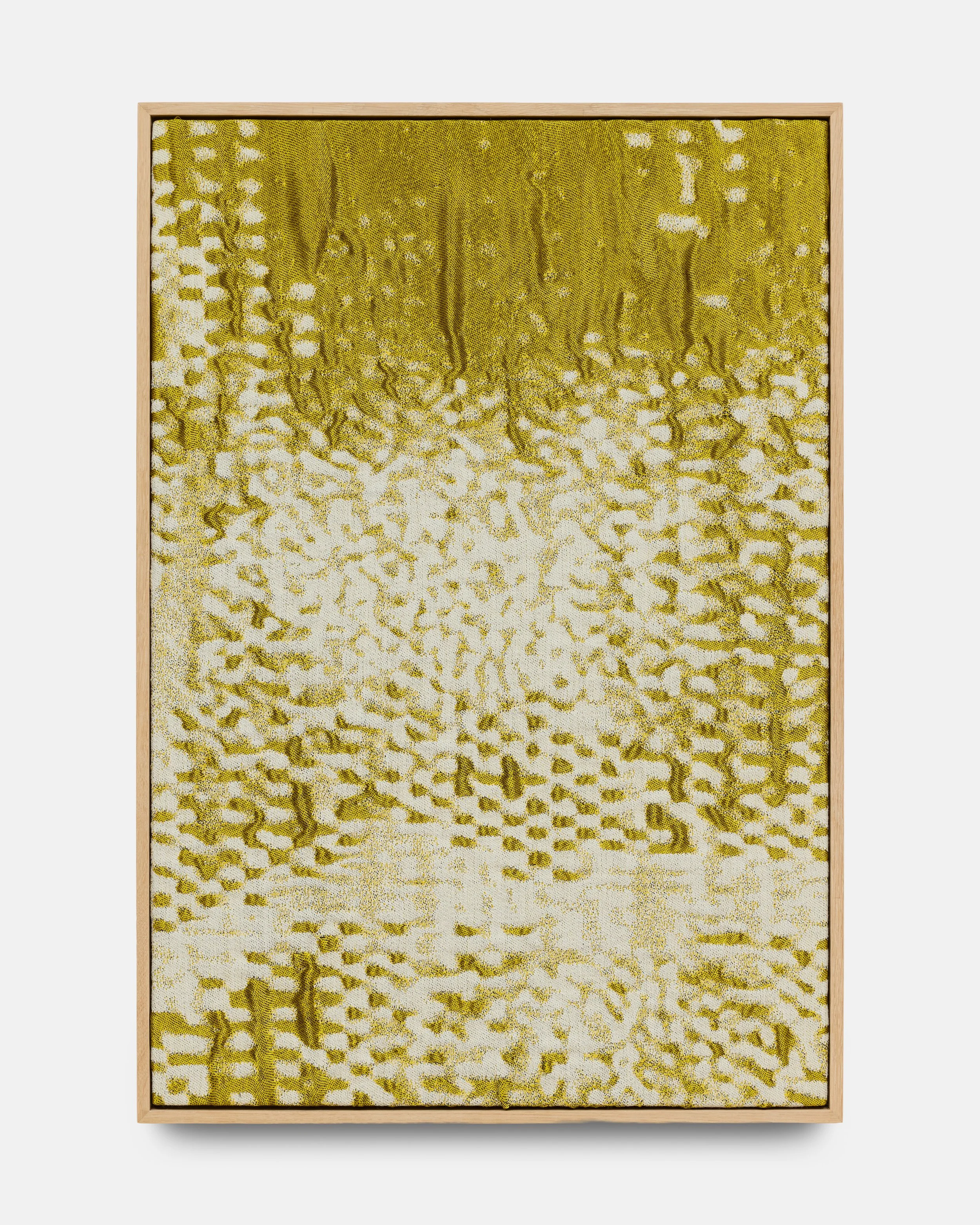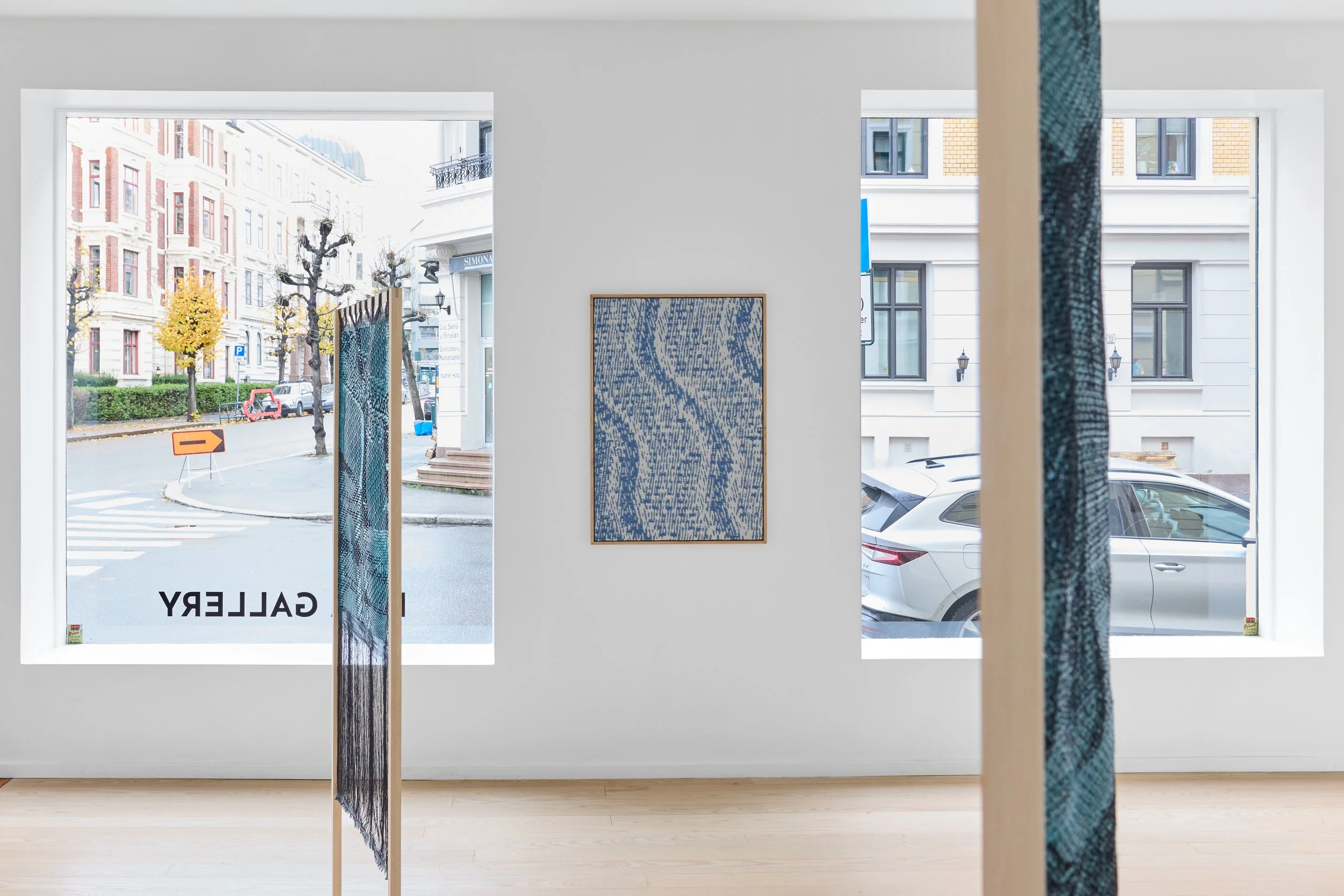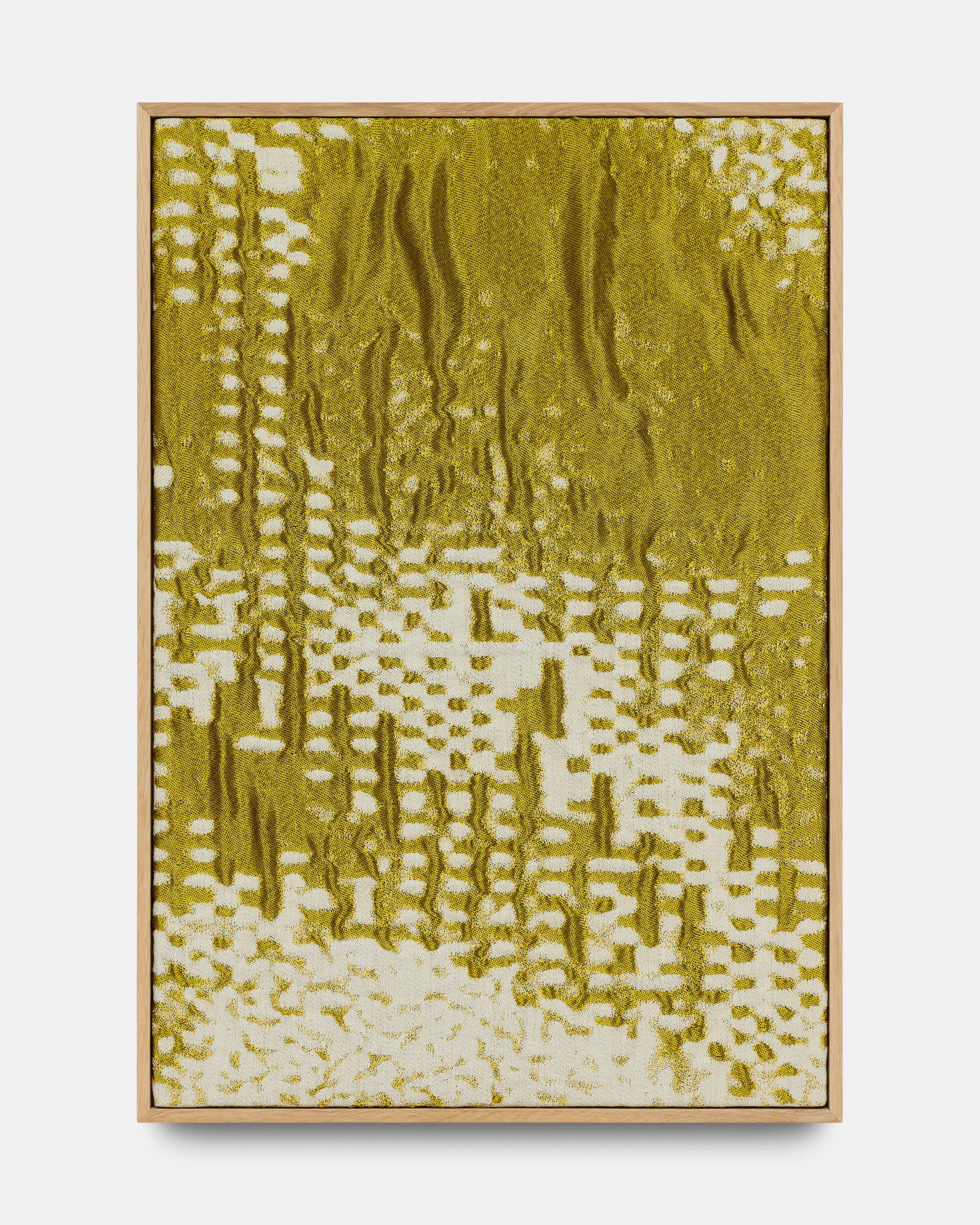 The exhibition features a series of interactive sound textiles and sculptural installations, alongside a collection of silent wall pieces that transform the ephemeral nature of sound into visual and tactile form. Through a meticulous process of translation, musical compositions are rendered as binary image files and reinterpreted into handwoven textiles using a digital loom. Here, sound becomes something physical – something one can touch, walk around, and experience through spatial proximity.