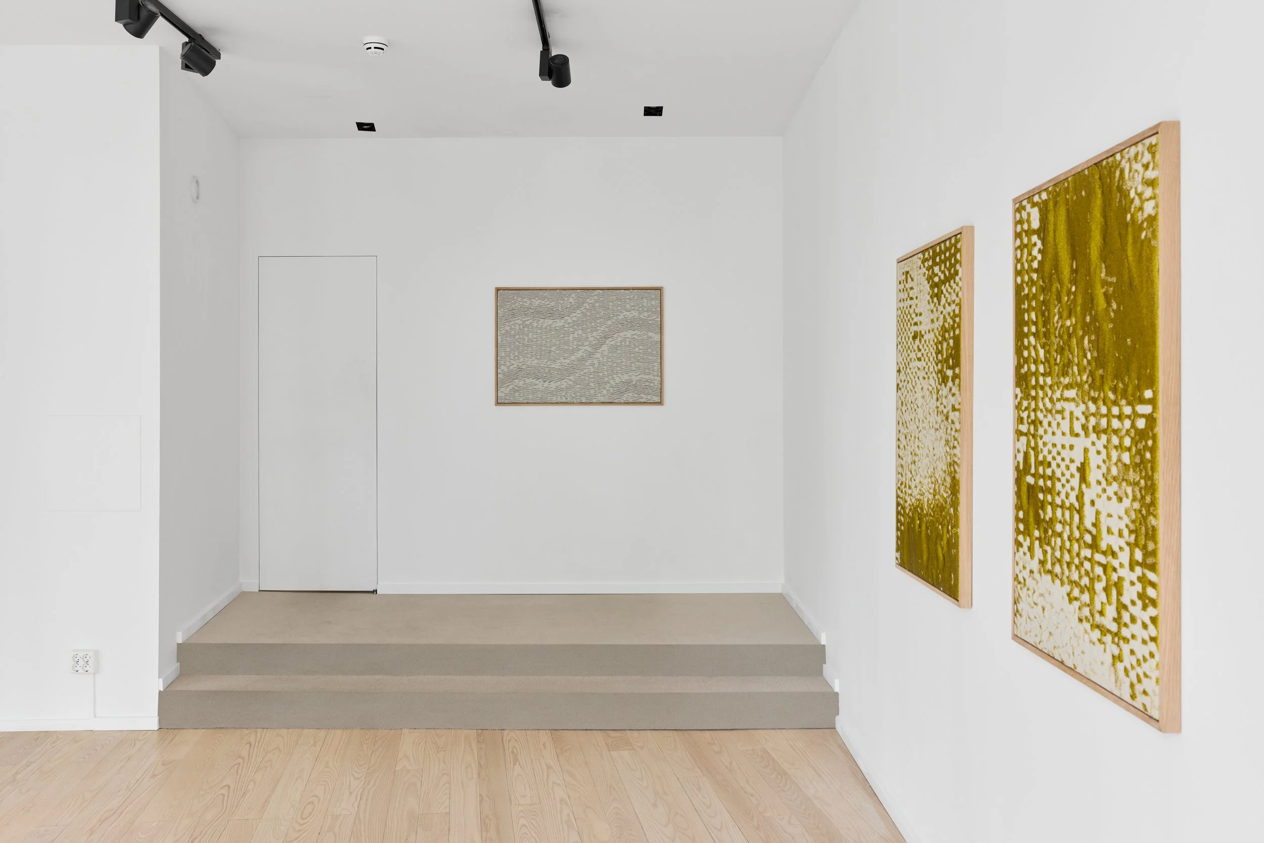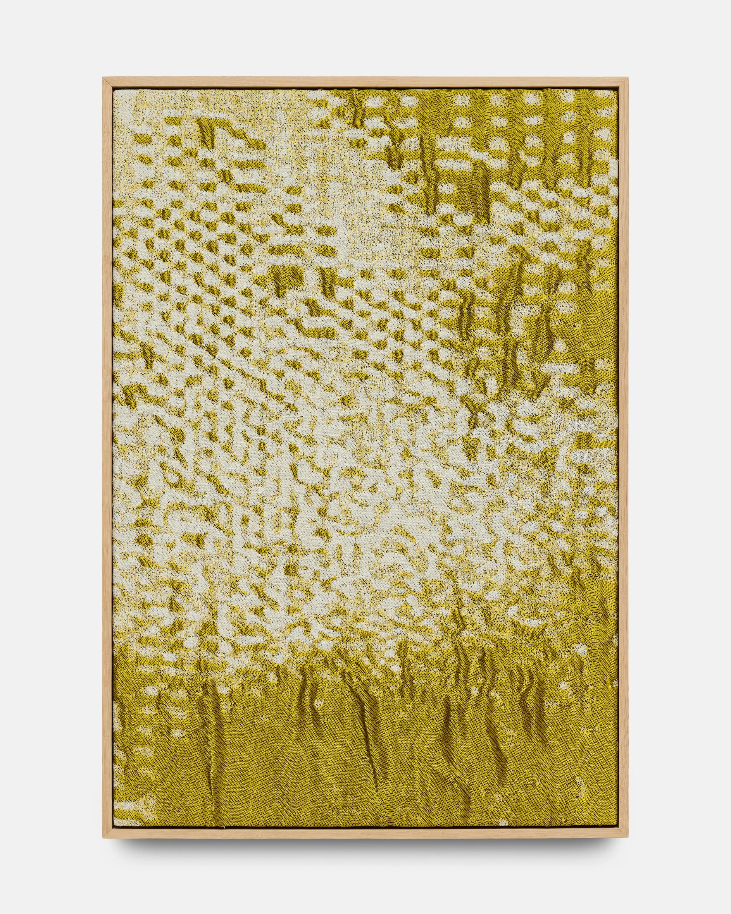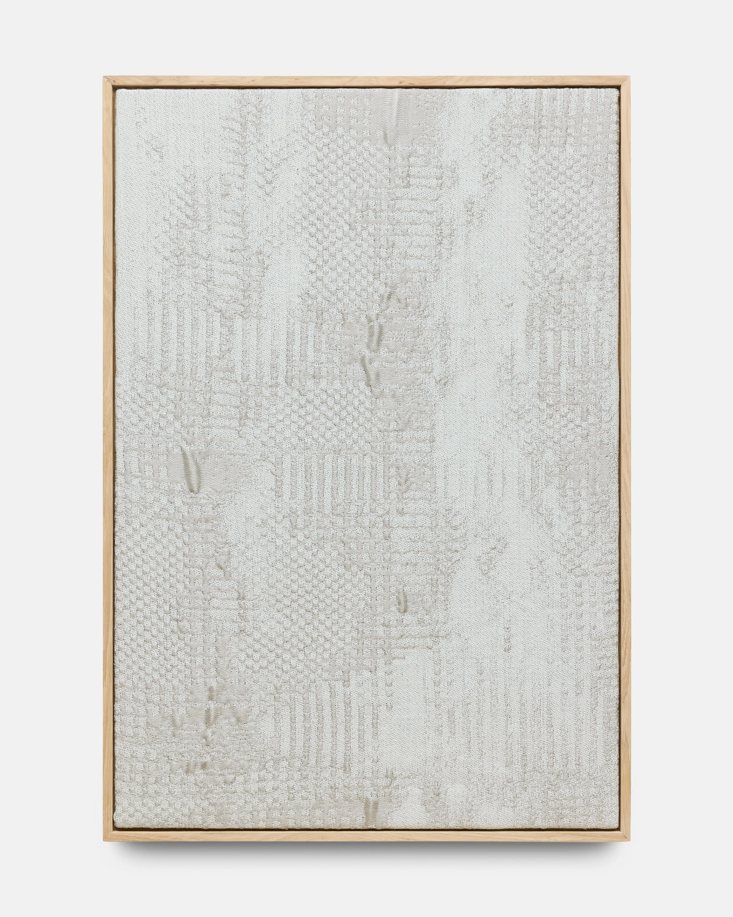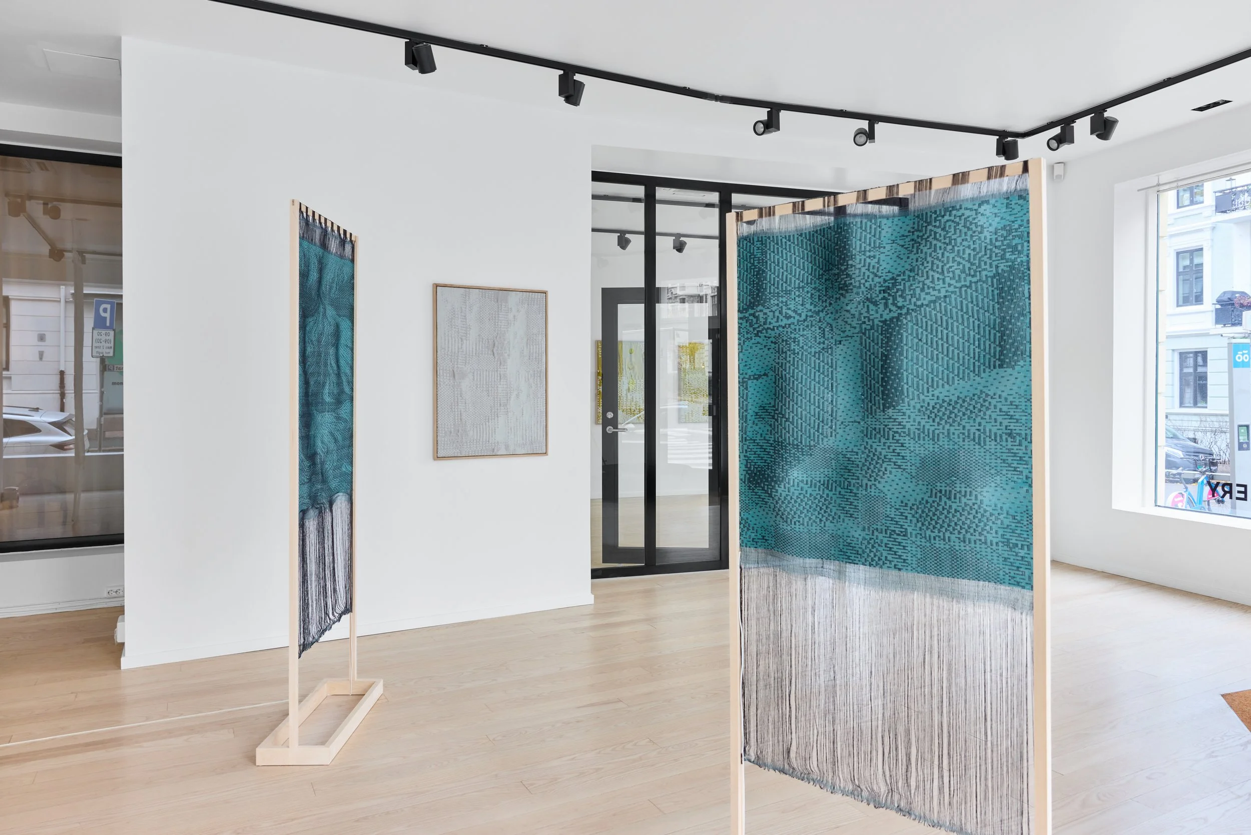 The exhibition features a series of interactive sound textiles and sculptural installations, alongside a collection of silent wall pieces that transform the ephemeral nature of sound into visual and tactile form. Through a meticulous process of translation, musical compositions are rendered as binary image files and reinterpreted into handwoven textiles using a digital loom. Here, sound becomes something physical – something one can touch, walk around, and experience through spatial proximity.