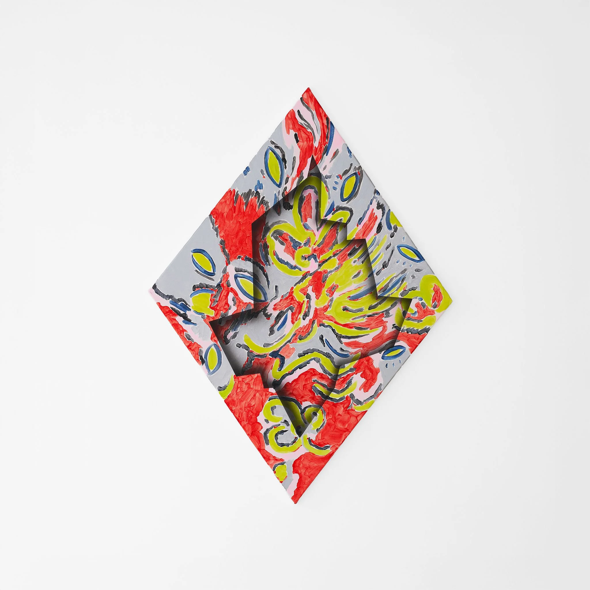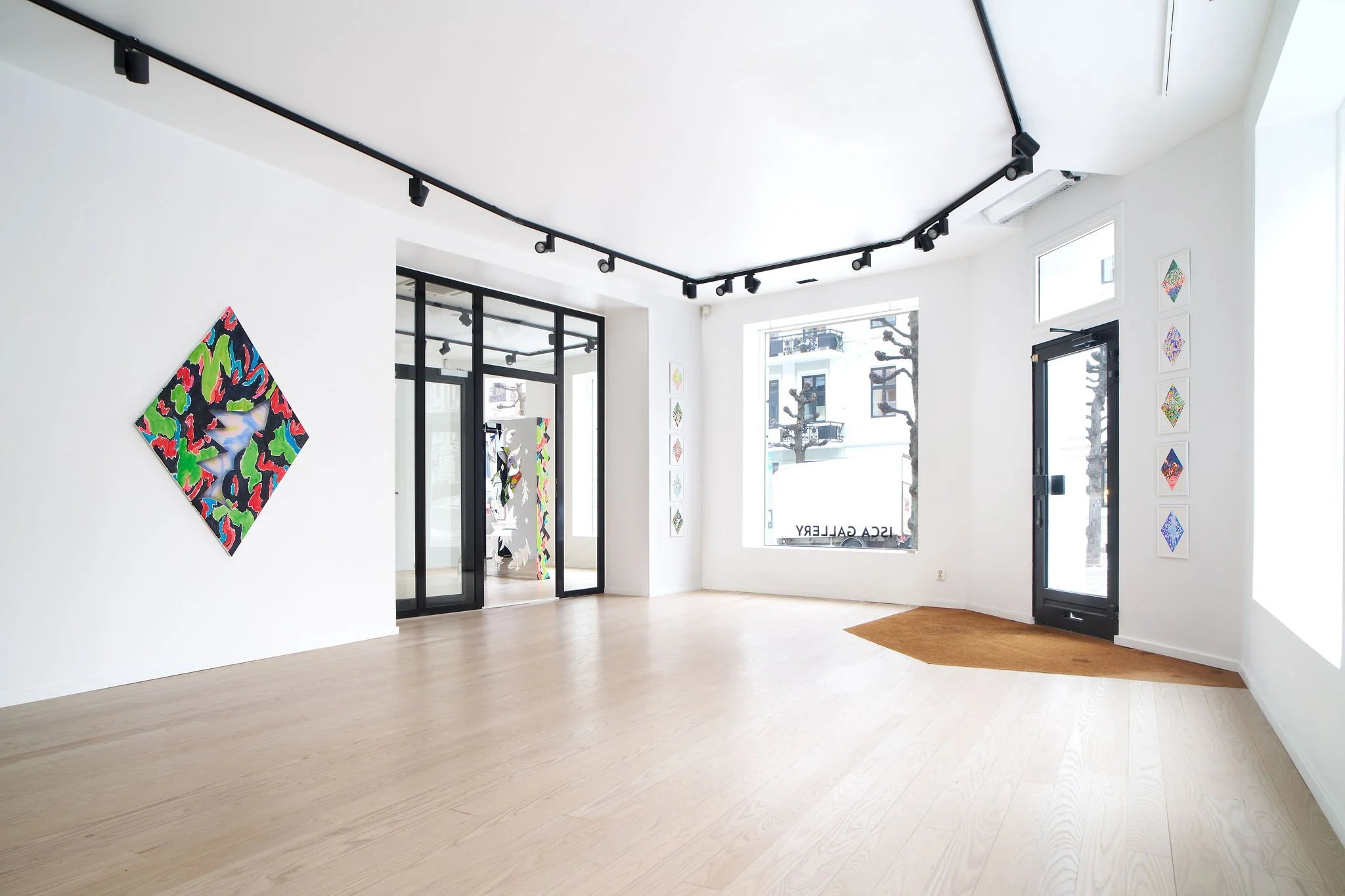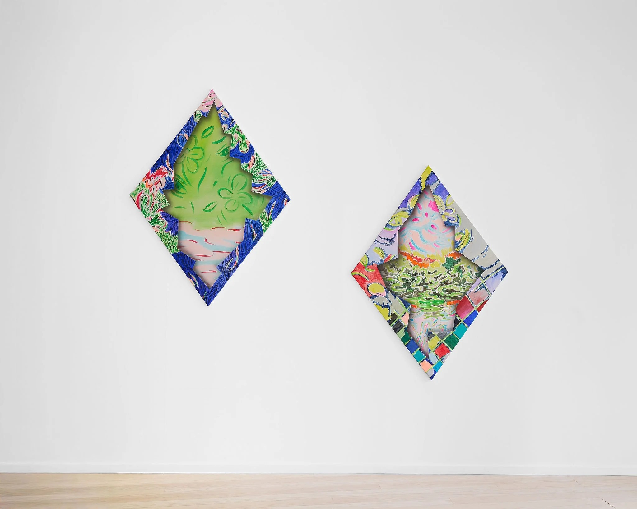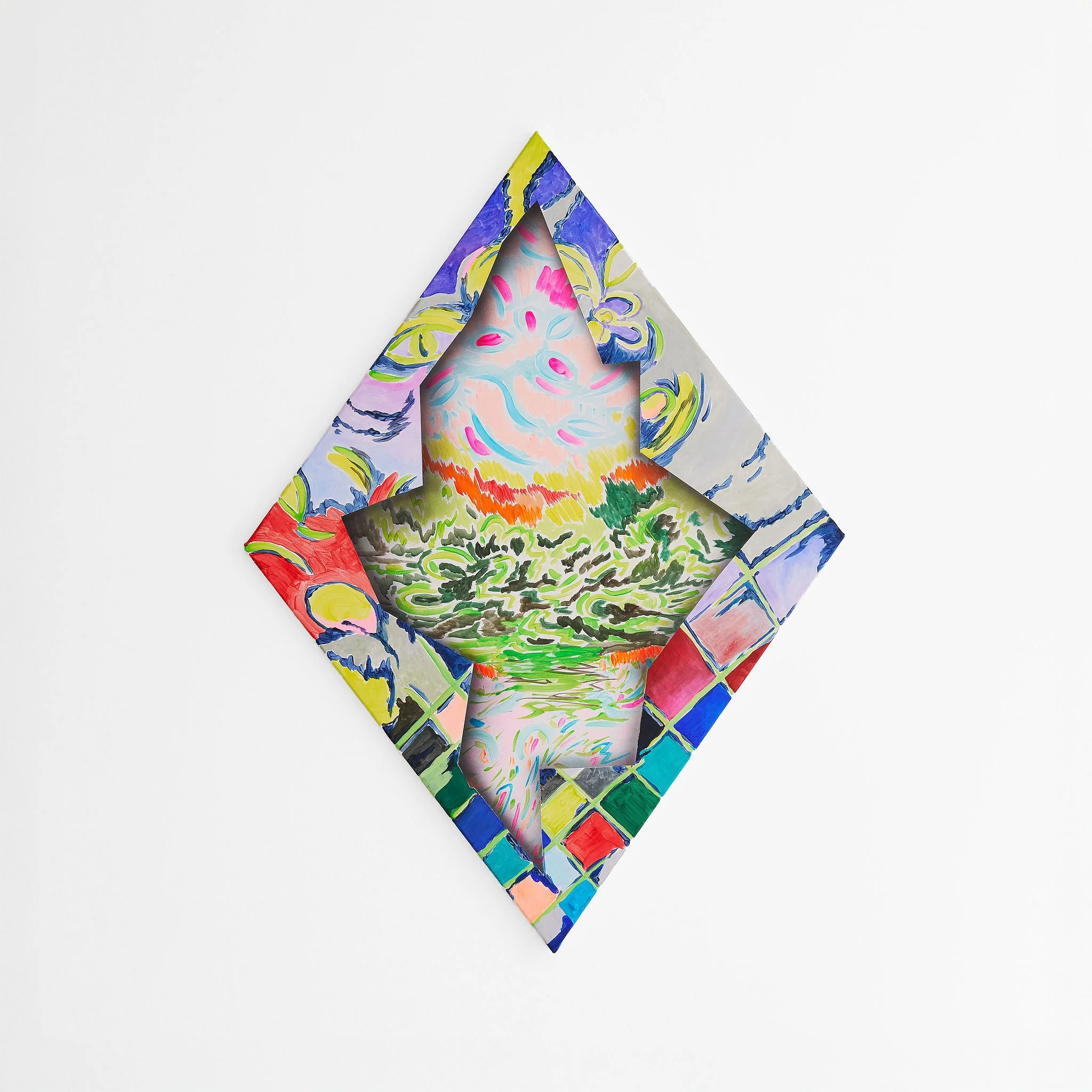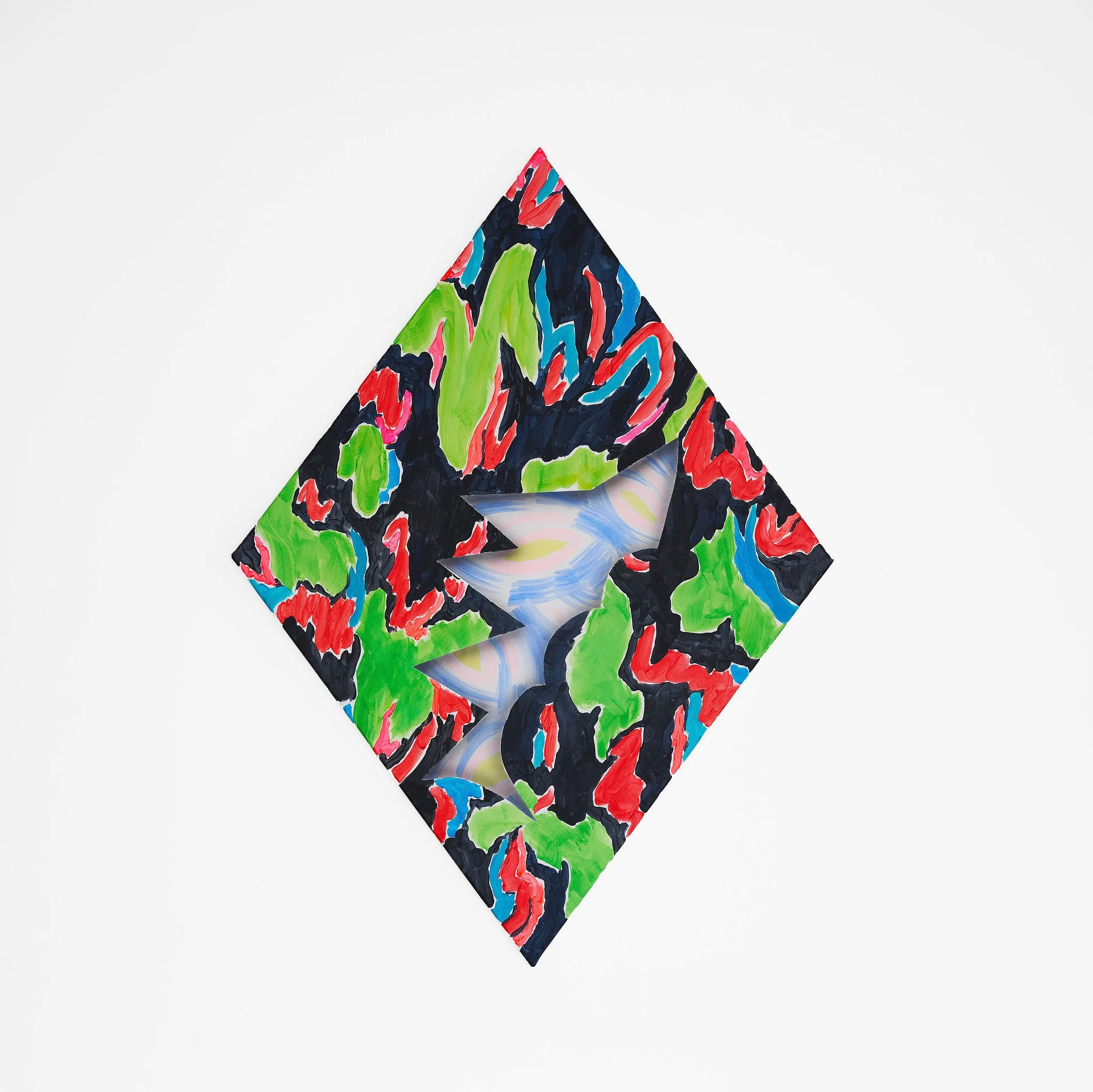 ISCA Gallery is pleased to present Pretending to Stay Calm, a solo exhibition by Ingrid Toogood. This marks Toogood’s second solo exhibition at the gallery and features a new body of work consisting of diamond-shaped paintings, works on paper, and new mirror-based works.
