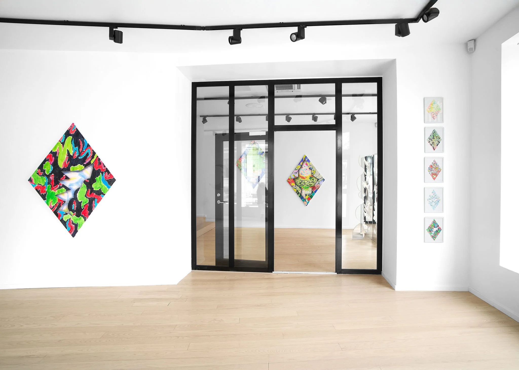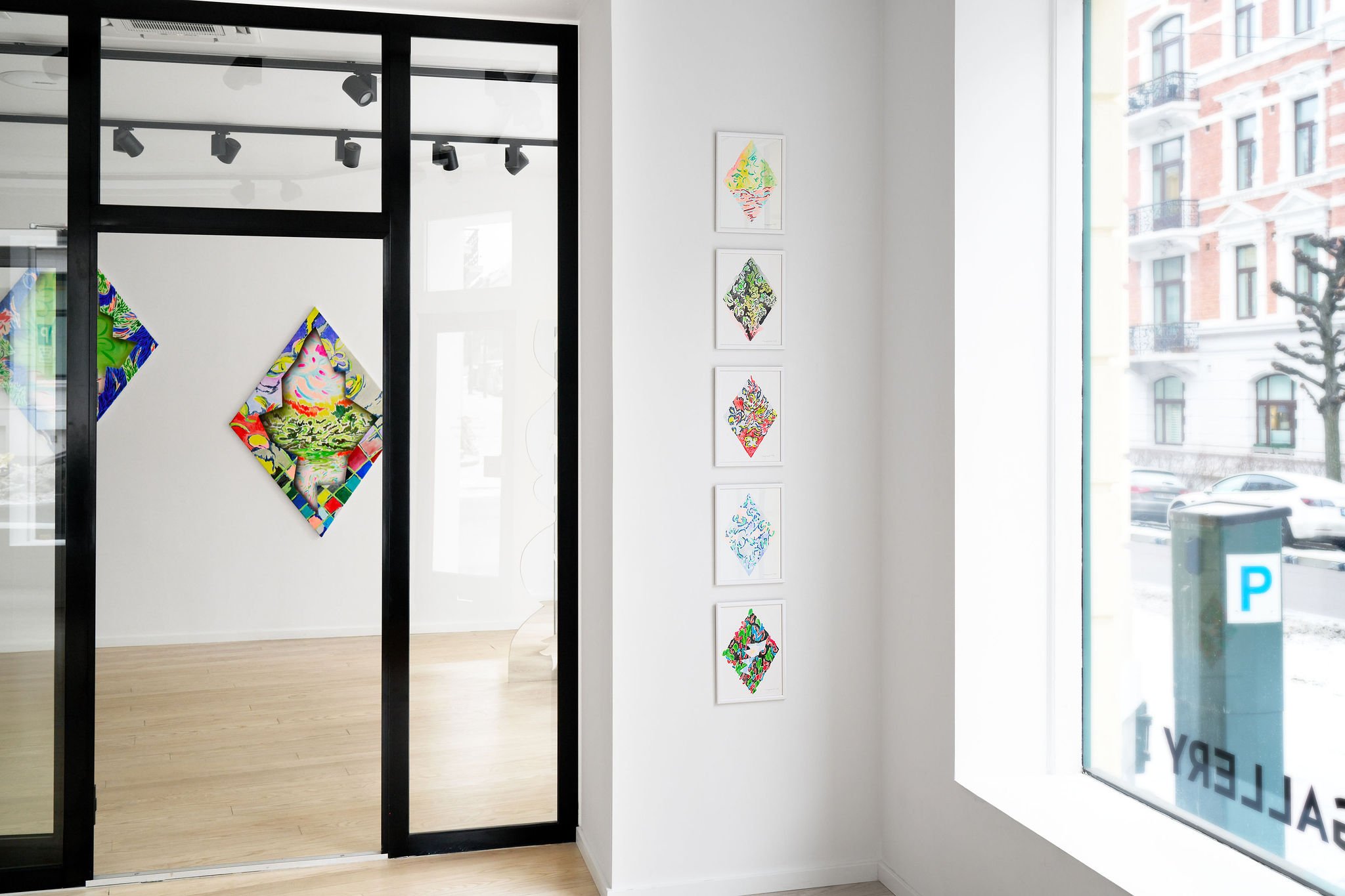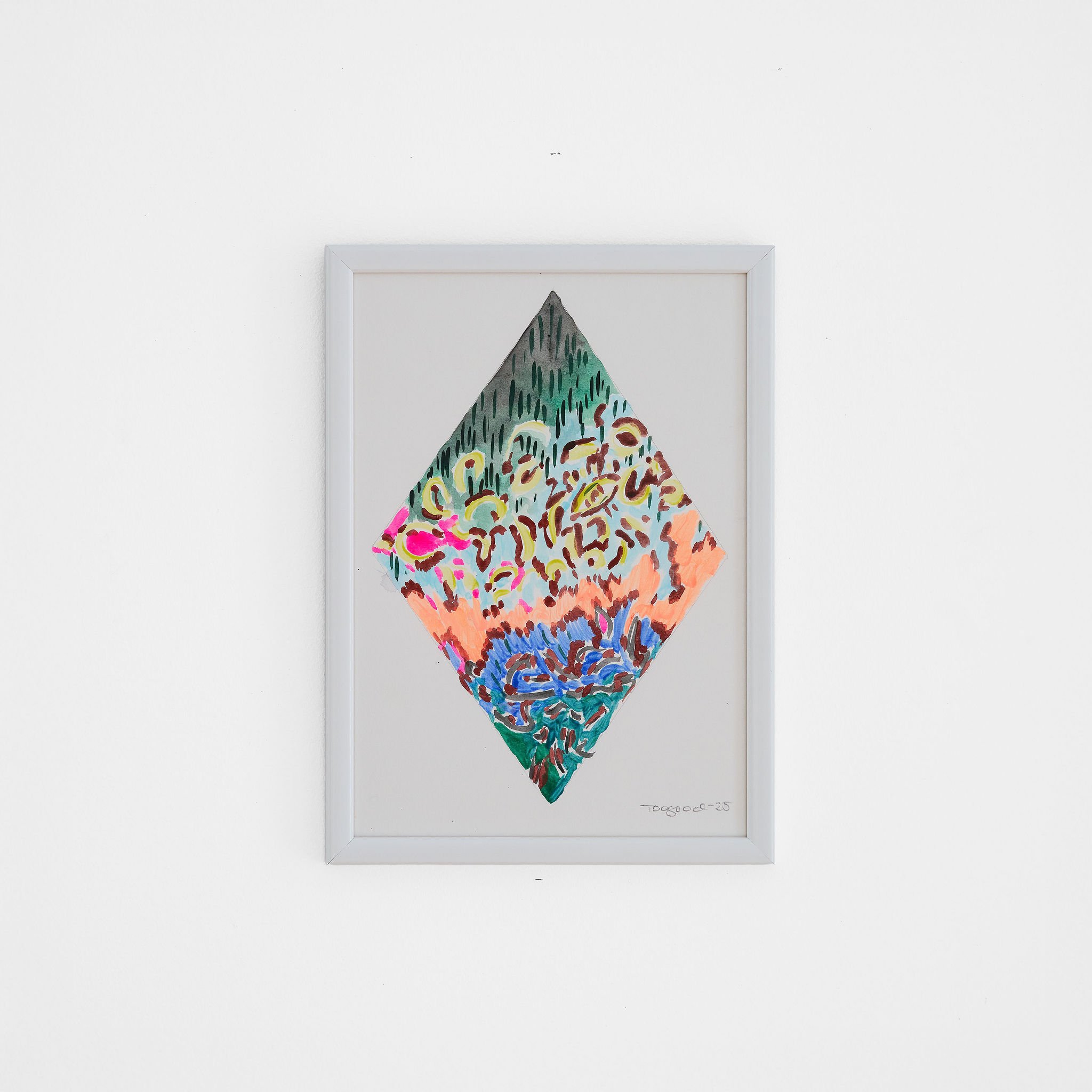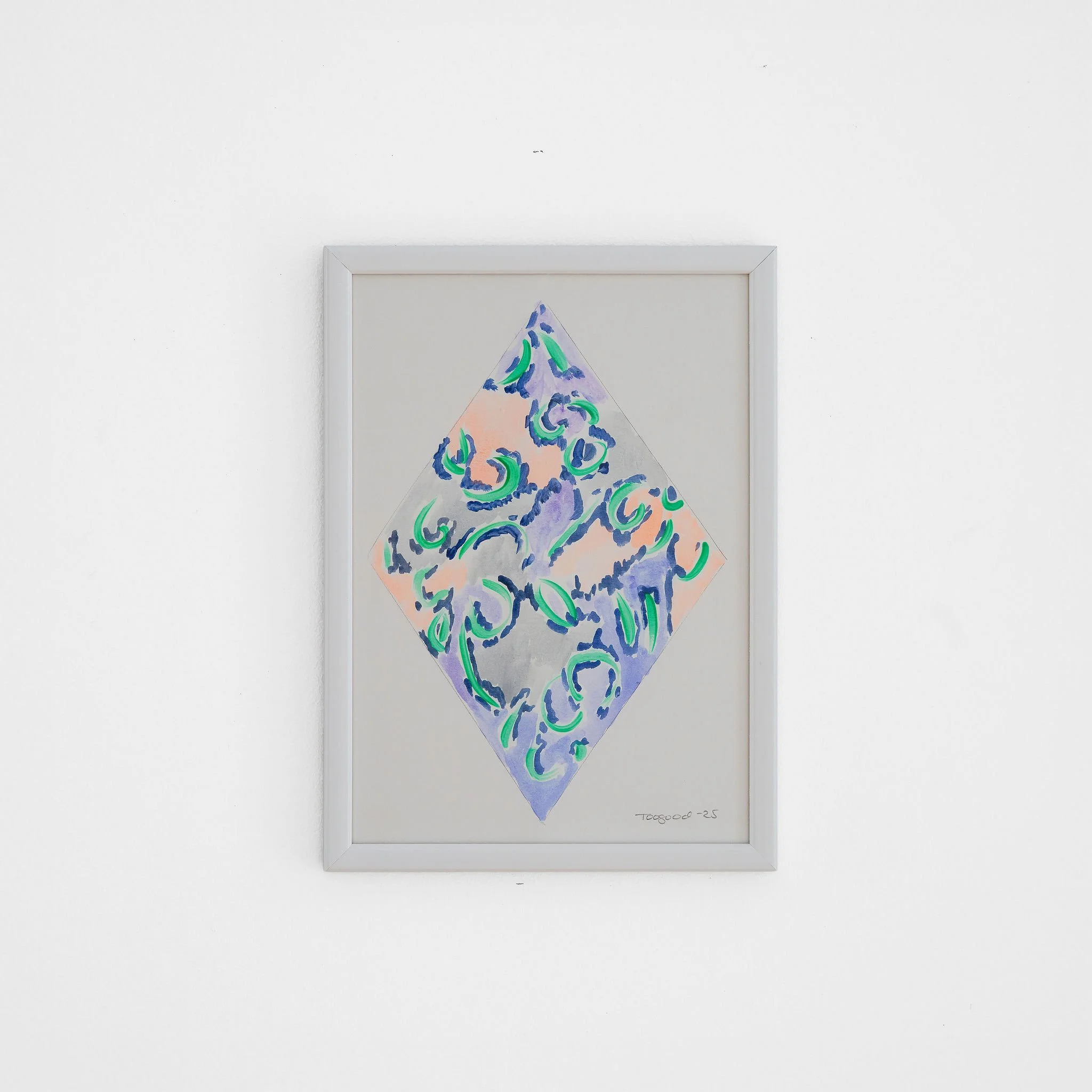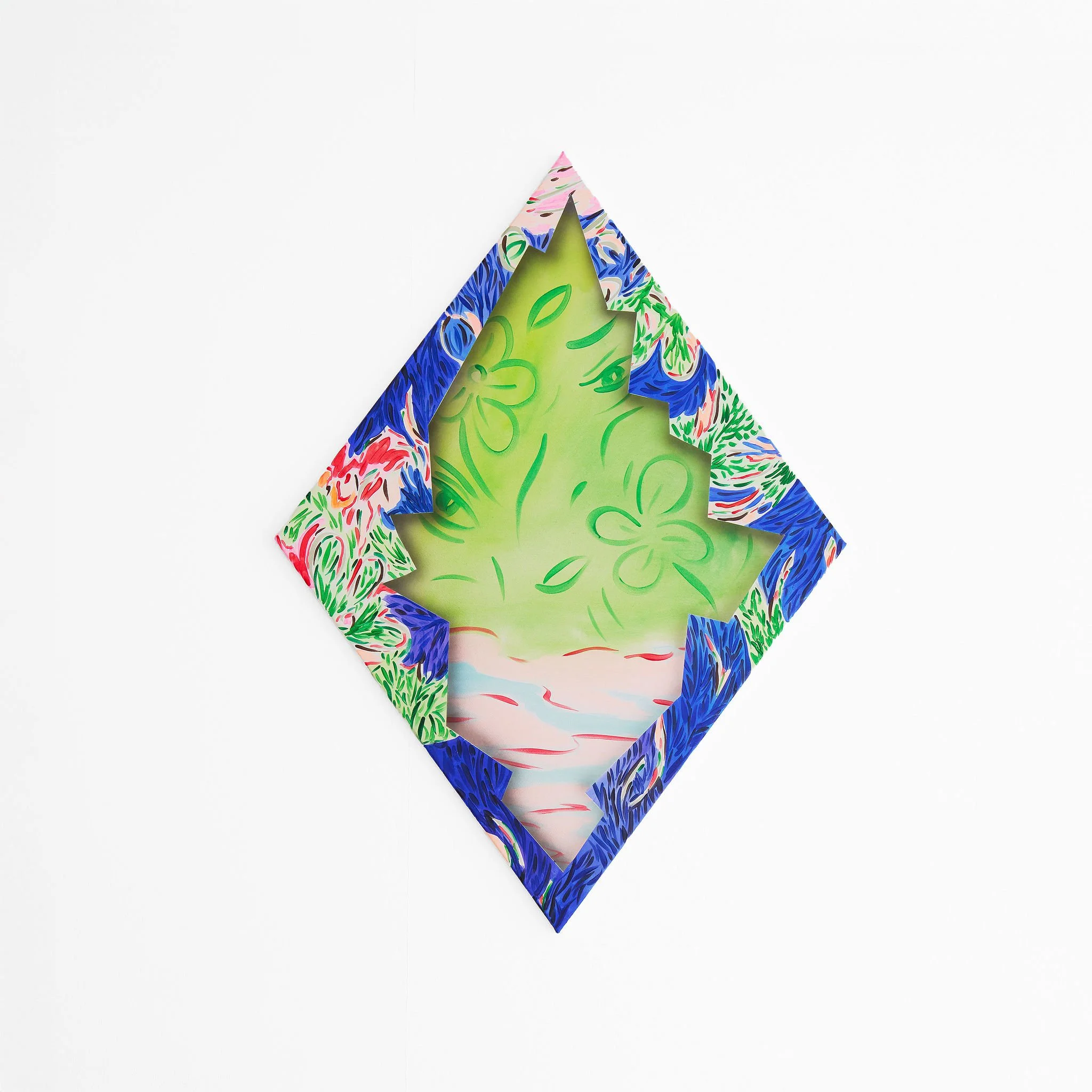 ISCA Gallery is pleased to present Pretending to Stay Calm, a solo exhibition by Ingrid Toogood. This marks Toogood’s second solo exhibition at the gallery and features a new body of work consisting of diamond-shaped paintings, works on paper, and new mirror-based works.