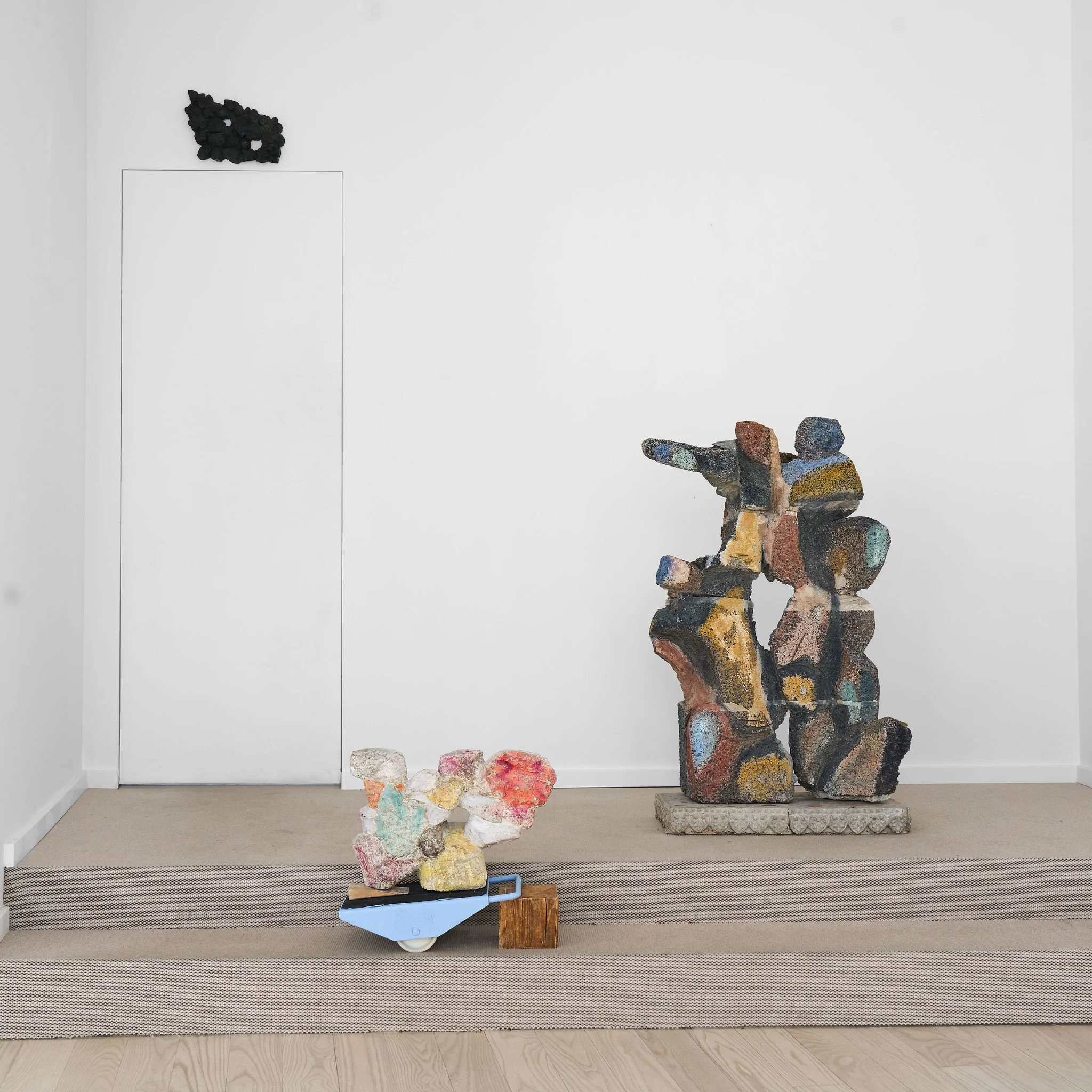 Trolleys, discarded hearths, and scavenged chimneys become not just supports but protagonists. Roles shift. A Leca chunk becomes a plinth. A soapstone becomes a ledge. The line between what carries and what is carried dissolves.