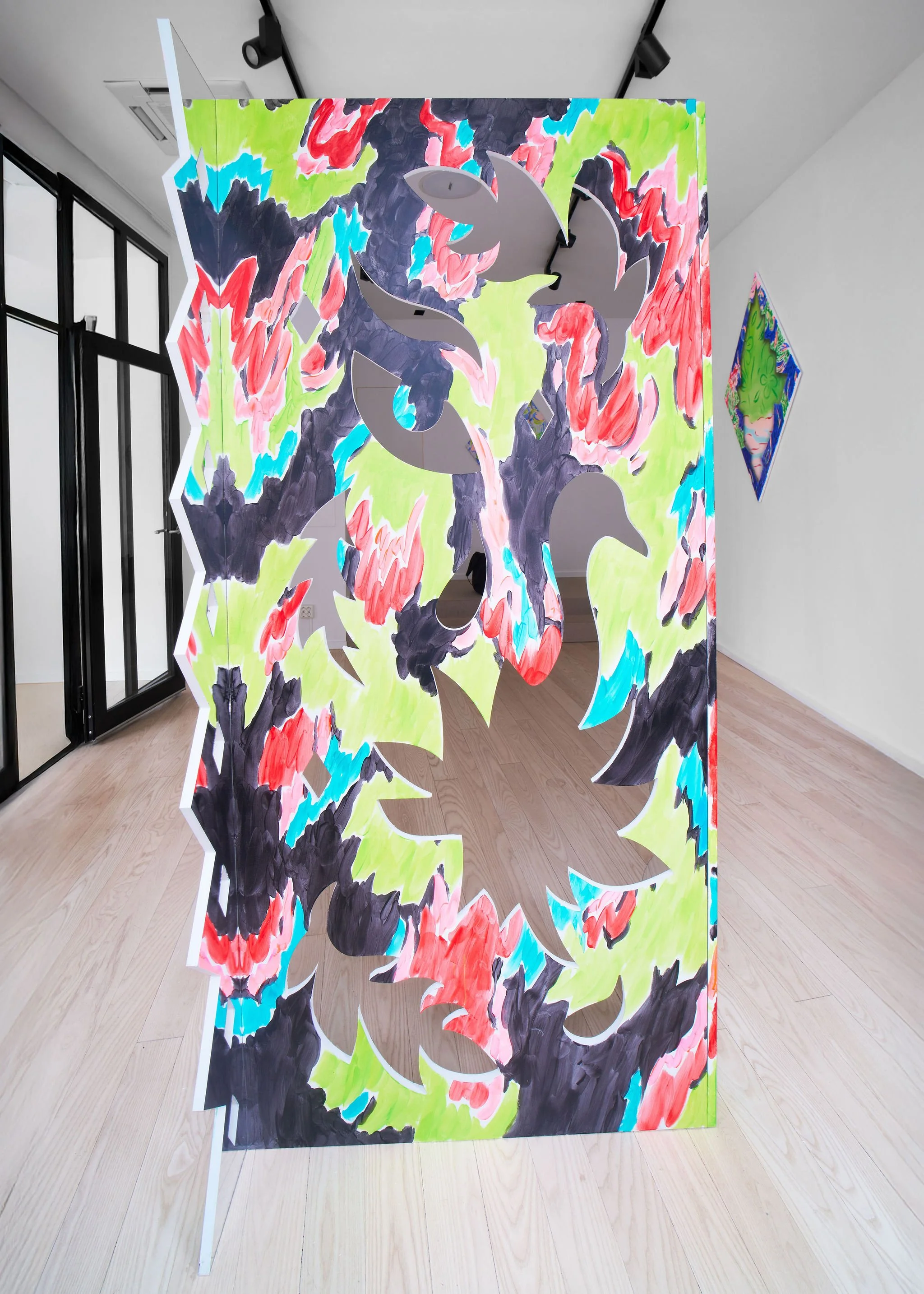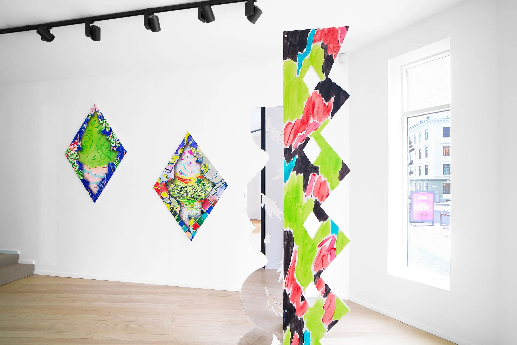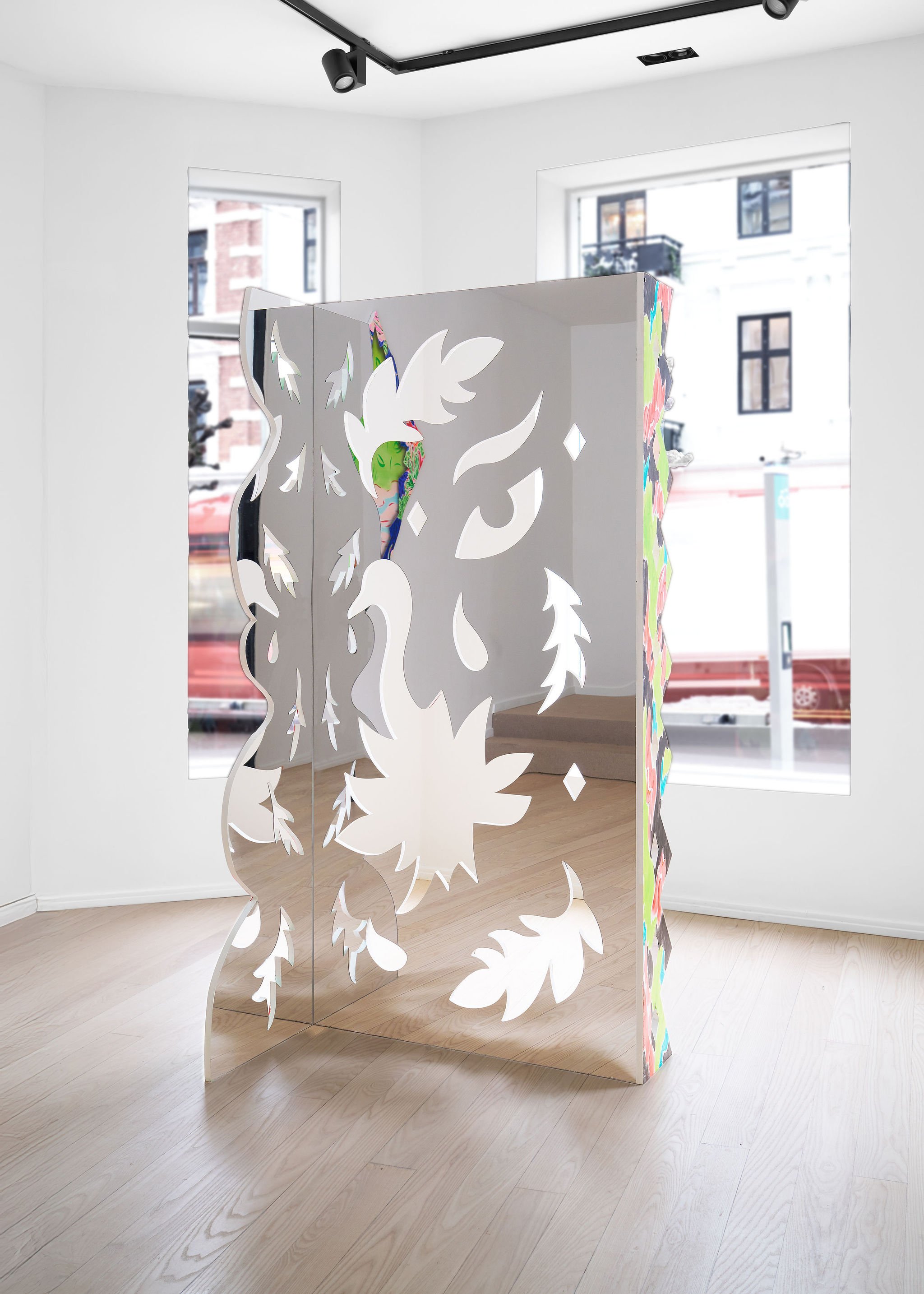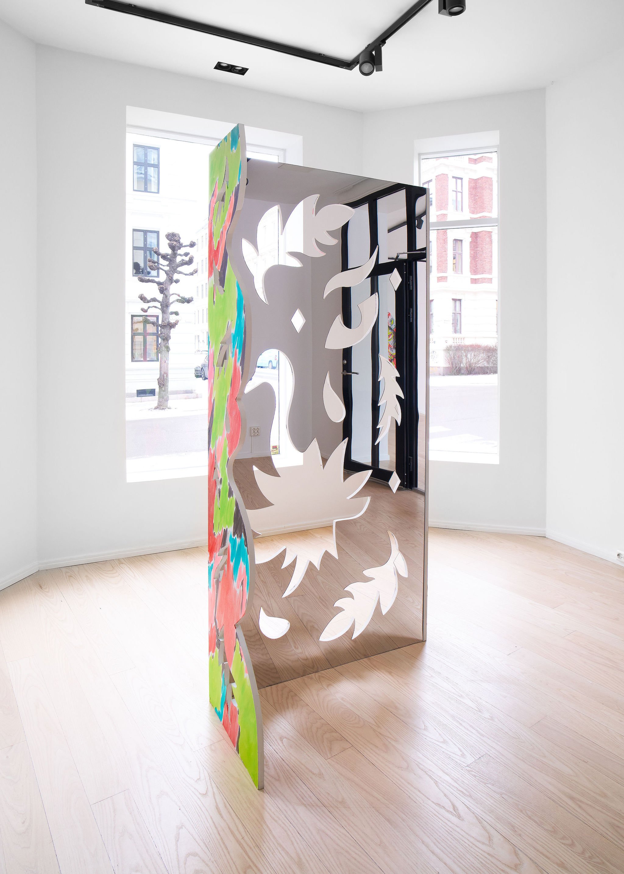 Ingrid Toogood (b. 1976) graduated from the Oslo National Academy of the Arts (KHiO) in 2002. She works across painting, sculpture, installation, and performance. Her artistic language is characterized by the interplay between painterly illusion and sculptural strategies, incorporating colorful trompe l’oeil effects, carved surfaces, and mirrors. Thematically, her work revolves around perception—what we see and what we believe we see. Toogood seeks to capture the fleeting and to give form to something that has disappeared, or perhaps never existed at all: a longing for the unknown and the lost.